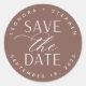 Uma maneira elegante de selar seus envelopes de data, esses adesivos de chic em tom de terra neutro, a marca marrom teracotta "salve a data" no centro, com seus nomes e data de casamento curvados em um layout circular. Projetado para corresponder ao nosso casamento do Smooth Script, salve a coleção de datas.