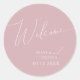 Apresentando nossa impressionante escrita caprichosa | rosa de casamento empoeirado benvinda adesivo redondo clássico perfeito para a sua simples celebração do primavera boho moderno. Nosso elegante design inclui uma paleta de cores vibrante brilhante e pastel com um script de caligrafia quic vintage. Quer você prefira um estilo minimalista ou clássico, nosso produto editável exclusivo oferece luxo e elegância, perfeito para criar um toque clássico, ainda que romântico, para tornar seu dia especial inesquecível. Contacte-nos com quaisquer perguntas sobre o design, e deixe-nos ajudá-lo a fazer o casamento dos seus sonhos.