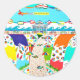 Um colante redondo colorido representando a divertida cidade de praia de Sea Isle City, NJ! Design inclui o gazebo, bicicletas, tartarugas, chinelos, banner e muito mais! presente de excelente aniversário ou gafanhoto para quem ama Sea Isle City, NJ! O Sticker foi criado do artista local, a pintura acrílica original de Chris Ambrose.