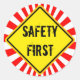 segurança primeiro - uma mensagem de excelente em um adesivo de aviso engraçado