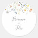 Estas selas florais de envelopes florais são perfeitas para um casamento rústico. A design apresenta flores elegantes, cor-de-água, cor-de-rosa, pincelada, roxa, marinho e branca, com folhas verdes esmeraldas. Personalize as etiquetas com os nomes da noiva e do noivo.