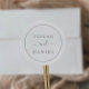 Estas selas minimalistas de prata são perfeitas para um casamento simples. A design romântica moderna apresenta cinzas clássicas de prata e tipografia branca, pareadas com uma caligrafia rustica, mas elegante, com estilo antigo, com letra de mão. Personalizável em qualquer cor. Mantenha o design simples e elegante, como está, ou personalize-o adicionando seus próprios gráficos e trabalhos de arte. Personalize o rótulo com os nomes da noiva e do noivo.