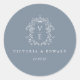 Monograma de crista em azul empoeirado, selo de envelope de convite de casamento. Crista de estilo barroco inspirado em vintage.