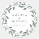 Incorporando a delicada ilustração de eucalipto da suíte de casamento correspondente, e cercando seu texto em um quadro de folhas bonito de louros, este adesivo pode ser usado como um selo de envelope ou nos seus favores de casamento.