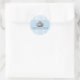 Faixas azuis e brancas com coroa de príncipe no centro e as palavras, "Um Pequeno Príncipe está a Caminho!" adesivo selo de envelope de convite de chá de bebê menino e etiqueta de lembrancinha de festa.