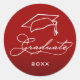 A palavra Formando em um script branco chic junto com o ano de classe e um boné formando, esses adesivos vermelho cardeal de 1-1/2" são lindos selos de envelopes para seus convites, anúncios e obrigado. CORRESPONDENTE a itens na nossa coleção.