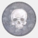 Espelho do crânio pintado à mão sobre uma pilha de crânios sobre fundo de aquarela roxa