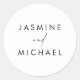 Coloque os envelopes de casamento com estas selas simples e na moda! O design apresenta seus nomes em letras negras modernas complementadas por um roteiro manuscrito. Esses adesivos de casamento preto e branco são perfeitos para selar envelopes, adicionar favores de casamento, e muito mais!