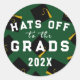 Vedantes de envelopes de graduação criativa, etiquetas de festa ou adesivos de presente de formando com bonés de formatura pretos e dourados em fundo verde.