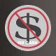 Nenhum adesivo de símbolo de caixa para eventos ou negócios que não podem receber dinheiro, apenas cartões ou pagamento eletrônico. Um sinal de dólar preto com um círculo e barra vermelhos "não" e as palavras "não".