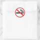 Fazer uma declaração anti-tabagismo contra o odor repugnante dos charutos e cigarros e os riscos para o cancer e outros perigos para a saúde do fumo passivo de cigarro, com o símbolo universal do "não", mostrando um cigarro a arder sob um círculo vermelho e uma linha diagonal.