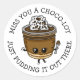 Bela caricatura de pudim de chocolate estilo Kawaii. Peitos de comida divertidos sem seus adesivos.