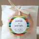 Um conjunto de adesivos de casamento redondos e coloridos com padrão de serpentes em um estilo aberto e mínimo que lembra as cores da hora de verão.