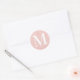 Estilo de fonte monograma serif moderno e sofisticado em branco contra um brilho suave de imitação de dourado rosa pálido.