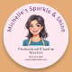 Um adesivo na moda redondo com uma mulher ilustrada moderna em uma paleta rosa macia — perfeito para selar embalagens, etiquetar suprimentos ou adicionar um toque profissional ao seu negócio de limpeza de casa.