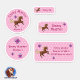 Adesivo Set - 24 Namensaufkleber Pferde Sterne rosa |