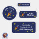 Coole wasserfeste Schulaufkleber für Kinder. Set mit 24 verschiedenen eckigen und runden Namensaufklebern, Motiv Rakete.