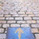 Seta amarela marcando o caminho do Santo James (Camino de Santiago), Logroño, La Rioja, Espanha