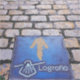 Seta amarela marcando o caminho do Santo James (Camino de Santiago), Logroño, La Rioja, Espanha