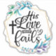 Seu Amor Nunca Passa Por Um Pau. Este lindo adesivo azul floral floral é a maneira perfeita de mostrar sua fé no Cristo de Jesus. Quer você a use para decorar sua Bíblia, carro, ou laptop, este adesivo é uma maneira bonita e única de mostrar sua devoção. Os símbolos de cruz e batismo no centro da coroa são poderosos lembretes do sacrifício e amor do Cristo de Jesus. Peça este adesivo agora e mostre sua fé para que todos vejam!
