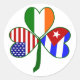 Um adesivo redondo clássico com uma pedra de champanhe apresenta uma bandeira em cada folha. Os Estados Unidos, a Irlanda e Cuba estão todos representados. Excelente jeito de celebrar Ruas. Dia de Patrick, 4 de julho e feriados cubanos também.