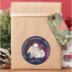 Pinheiros da cozinha festiva de Natal.Projetados com um anjo doce com asas amarelas segurando um pantaneiro pastor. Sentado com cordeiros brancos. Fundo azul marinho e cor d'água burgundy, com minúsculos flecks de brilho dourado falso (não brilho real apenas uma imagem impressa). O texto diz: Da cozinha de (). Feita com amor. Paz na Terra Boa Vontade para Todos.