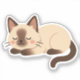 This sticker features a beautifully illustrated Siamese cat with signature dark brown points, curled up and sleeping. Perfect for pet owners and fans of elegant cats.