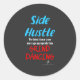 Dançando a mais recente mania de dança, a manivela lateral, ajuda adolescentes e adultos a ganhar dinheiro de lado em cima de seus rendimentos! Além disso, ao contrário do moinho, o antigo grupo NÃO SERÁ enviado ao escritório do diretor para receber suspensões porque é tão apropriado para a idade! A frase nesses adesivos redondos pretos, "barriga lateral", está em texto azul neon.