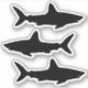 Triplo o tubarão. A arte gráfica vetorial está disposta no autocolante quadrado três vezes para que você tenha três tubarões nadadores separados. O design é um tubarão nadando. Você pode mudar o tamanho dos tubarões se quiser criar uma escola de tubarões. Presentes para pessoas que amam o mar.