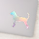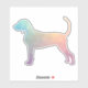 A silhueta de visão lateral da raça de cães caçadores do Bluetick Coonhound cheia de padrões geométricos coloridos do pastel. Esta raça de cães pode representar: Black and Tan, Coonhound, caça, hound, Hanover Hound, Bracco Italiano, White and Black Hound francês, Bleu de Gascogne, Large Blue Gascony Hound, Petit Gascon Saintongeois, Ponteiro Espanhol, Burgos Pointer, Burgos, Burgos, negro e bran austríaco, Ariegeois, Artois