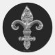 Elegante metálico prateado como Fleur De Li num fundo preto, faz um belo adesivo para a parte de trás dos seus envelopes.