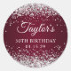 Crie os seus autocolantes 50ª festa de aniversário. Garota falso cinza prateada cintilante reluzente sobre um fundo de gradiente de vinho tinto borrado. Personalize os estilos de fonte para criar o seu próprio adesivo design para sua celebração especial. Uma caligrafia elegante clássica emparelhada com uma fonte serif de todos os bonés.
