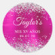 Crie o seu próprio Mis XV Anos ou quinceanera 15 festa de aniversário em favor de adesivos. Garota falso brilho prateado brilhante em papel fotográfico brilhante fuchsia magenta escovou metal estilo ombre. Personalize os estilos de fonte para criar o seu próprio adesivo design para sua celebração especial. Uma caligrafia elegante clássica emparelhada com uma fonte serif de todos os bonés.