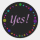Sim, com estes adesivos divertidos. A palavra Sim, está escrita na lavanda, no centro de estrelas retrorreflectoras coloridas, em preto, adesivos. A cor preta do plano de fundo pode ser personalizada para uma cor diferente da sua seleção. Obrigado por comprar em CherylsArt no Zazzle.