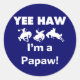 Yee Haw, eu sou uma camiseta Papuásia, canecas, cartões, adesivos, botões de anúncio, keepsakes de papá, e outros presentes de mamão com um cavalo de fivela e design de texto. Estes itens de roupa e presentes são perfeitos para avós pela primeira vez ou mamão temperado de uma nova chegada!