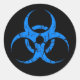 Adesivo Símbolo azul riscado do Biohazard no preto