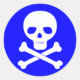o crânio e os crossbones envenenam o símbolo em um fundo azul
