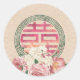 Símbolo dobro da felicidade no teste padrão delicado da peônia
