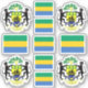 Quatro vinhetas de vinilo de corte personalizado com o casaco de braços do Gabão e sete autocolantes com a bandeira Gobonesa no centro
