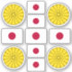 Quatro vinilas de corte personalizado com o selo imperial do Japão e sete autocolantes com a bandeira japonesa no centro