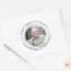 Simpatia Funeral Foto Memorial Sticker. Passe com uma foto da pessoa que está sendo lembrada, o título simpático "Para sempre em nossos Corações", seu nome e datas de nascimento/morte. Este autocolante pode ser usado para a Celebração do Dia da Vida, Dia do Memorial e funerais, ou enviado como autocolante em um envelope ou colocado em um presente para um membro da família ou amigo.