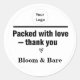 Deliver your products with warmth and professionalism using our custom thank you business stickers, designed to help small business owners build lasting customer relationships. This editable design features a heartfelt message — Packed with love — thank you — and allows you to add your logo, change fonts, and adjust colors to match your brand.