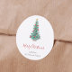 This simple and elegant Christmas sticker features a watercolor pine tree with red ornaments and the words "Merry Christmas" in stylish script. Personalize it with your own custom text and family name. Ideal for holiday party favors and gifts.
