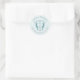 Estes adesivos de casamento apresentam uma crista monográfica clássica em azul macio, criando um toque moderno, mas elegante para os seus favores de casamento ou festa de noivado. Projetado com uma simples tipografia, este obrigado que você cola permite personalizar as iniciais, nomes e datas da noiva e do noivo usando os campos de modelo fácil. Uma escolha eterno para a decoração clássica do casamento. Compre mais designs em www.zazzle.com/dotellabelle.