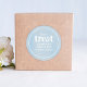 Esta design apresenta um simples e brilhante minimalista de aquarela azul, um oceano de verão, um modelo de "levar a tratar" minimalista, um favor de etiqueta adesiva criativa, um doce biscoito de bar de buffet doce bonito, com um simples script minimalista de círculo, um chic caprichoso personalizado, etiquetas criativas de na moda, um rótulo azul de "tratador", um festival de piscina de quintal