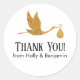 Adesivo Simples Faux Dourada Stork Obrigado! Chá de fralda