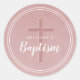 Um simples design de batismo ou primeiro adesivo de comunhão sagrado por Stacey Meacham, com uma cruz mínima sobre um fundo de aquarela macia. Perfeito para uso como um fecho de envelope ou como adesivo de favor.