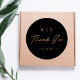 Estes adesivos de casamento simples e na moda apresentam leitura tipográfica, "Obrigado" em folha de ouro falsa sobre um fundo preto puro. Adicione suas iniciais de monograma e data de casamento para etiquetas elegantes!