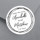 Minimalista simples Salve os adesivos de data com quadro de porta preta. Esses adesivos da praça da moda apresentam "Salvar a Data" no topo, seguidos dos nomes da noiva e do noivo e da data do casamento em uma mistura de fontes limpas e na moda. Um quadro de rabisco preto desenhado à mão de círculos confusos rodeia o design, acrescentando um toque divertido e caprichoso. Perfeito para comemorar seu noivado e o próximo casamento, esses adesivos são totalmente personalizáveis. Você pode ajustar o texto, o layout e as cores para ajustado o tema do casamento e a paleta de cores. Esses adesivos são ideais como fechos de envelopes para guardar os envios ou convites para casamento, acrescentando um toque moderno e encantador de acabamento a sua papelaria.