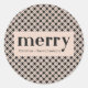 O adesivo de Natal rústico moderno inclui um impressão de verificação de xadrez preto e creme e uma feliz em grande escala com o seu nome personalizado. Este design contemporâneo é perfeito para selar seus cartões de natal. Por favor, veja esta coleção de Natal para coordenar convites festivos e acessórios de correio.